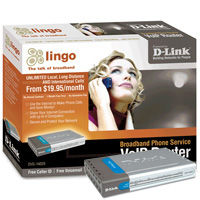 Using your existing broadband connection, the DVG-1402S/ L connects to your cable or DSL modem. Connect up to two regular phones to the DVG-1402S/L, and with an appropriate Internet phone service plan, you are ready to make VoIP calls. With the DVG-1402S/L, calling over the Internet is simple and works just like a regular telephone. With the included free trial from Lingo�, the DVG-1402S/L gives you everything you need to start enjoying Voice over Internet Protocol phone service. Unlimited local, long distance, and international calls can be made with the included Lingo voice service. Also enjoy additional features such as Caller ID, Voicemail, 3-Way Calling, Call Forwarding.